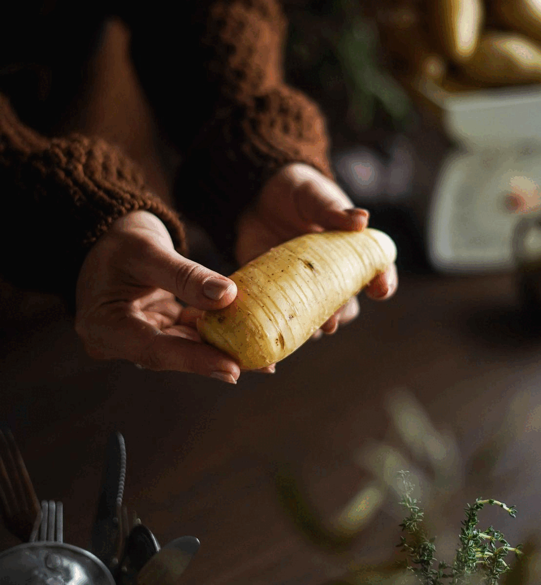 Qual é o truque para fazer o corte das batatas hasselback?