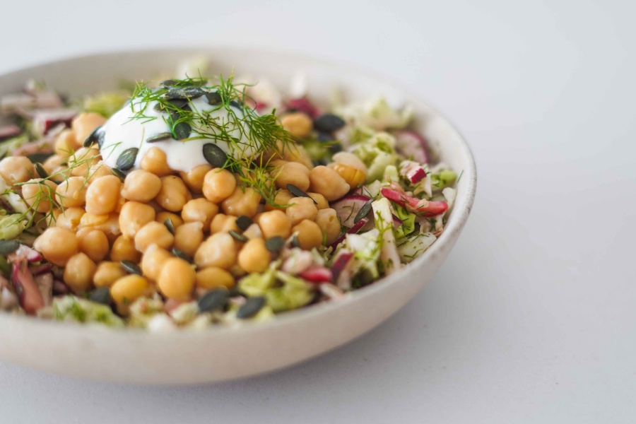 Salada de grão, pepino & rabanete