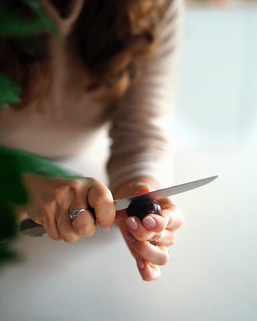 - Começa por fazer um corte na horizontal, na parte de cima de cada castanha (tenta perfurar apenas a casca e não cortar a própria castanha).