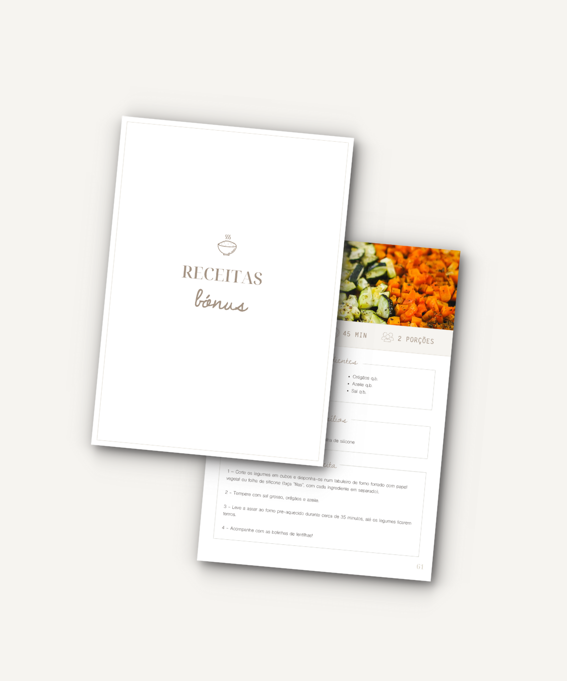Para além das 10 receitas para congelar, vai ter acesso a 2 receitas bónus de acompanhamento!