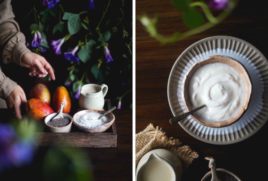 Em segundo lugar, ajuda bastante utilizar iogurte na receita, para além da bebida vegetal. Como o iogurte é mais consistente, vai ajudar a que o pudim fique cremoso.