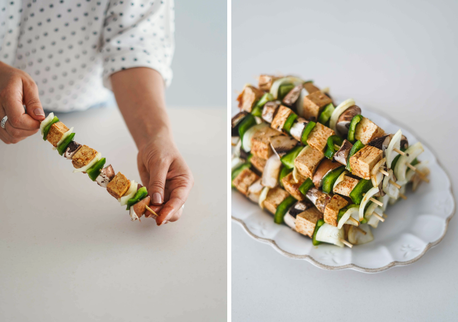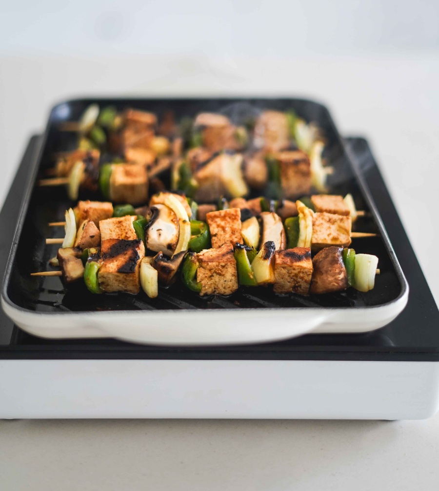 Qual a melhor maneira de cozinhar as espetadas de tofu & legumes?