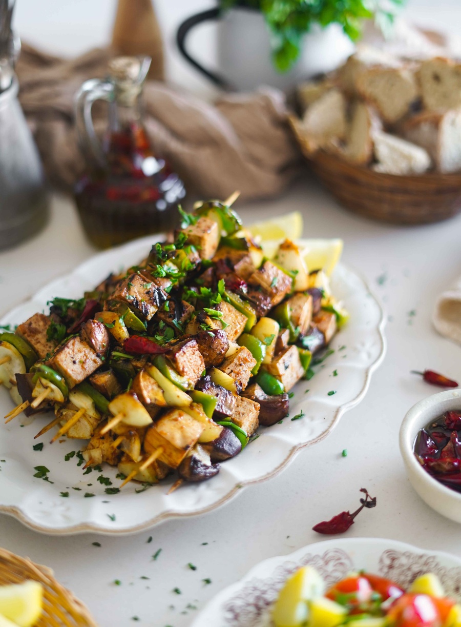 Desta vez trago-vos uma sugestão de prato principal perfeita para as churrascadas de verão. Estas espetadas de tofu & legumes são muito fáceis de preparar e ficam com um sabor maravilhoso!