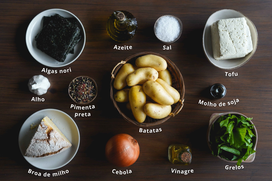 Esta é uma receita excelente para quem não tem muito tempo de preparar a ceia e agrada àqueles que normalmente não gostam de tofu. Nesta receita, as algas nori (as que são usadas em sushi) dão um toque especial à receita, com aroma marinho. O tofu é conjugado com a crosta de broa, bem aromática e crocante!